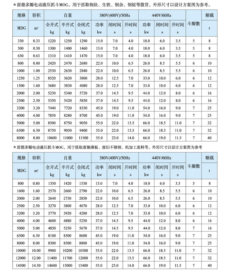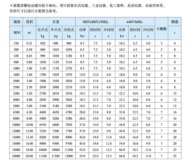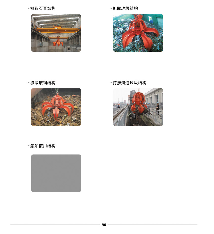 Electro hydraulic grab is a kind of grab with its own hydraulic system such as motor and hydraulic pump, which is driven by external power supply to realize opening and closing. The grab depends on the forward and reverse rotation of the motor or the hydraulic directional valve to control the opening and closing of the grab. Electro hydraulic bulk cargo grab is an effective tool for handling bulk cargo such as yellow sand, coal, mineral powder, ore and cement in various harsh environments. The grab is equipped with a hydraulic system, and the main components of the hydraulic system, such as valve group, seals, valve blocks, etc., are European and American brands. The hydraulic pump adopts constant power pump and hydraulic servo system. The system pressure change can effectively control the output of the pump. When the maximum pressure is reached, the flow of the pump is very low, which greatly reduces the overflow, reduces energy consumption, and reduces the oil temperature, so as to use long-time continuous work and greatly improve the production efficiency. The grab has simple structure and convenient operation, and can work in various harsh environments. The unique jaw curve is particularly conducive to the loading and unloading of various bulk cargoes. The upper part of the grab is equipped with a cable interface to facilitate the connection with the crane.